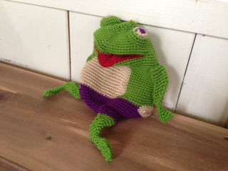 カエルちゃん 手編みのポーチかな?