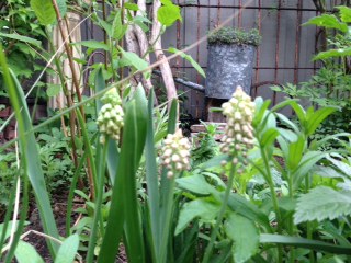 ムスカリ、水仙、土が見えている