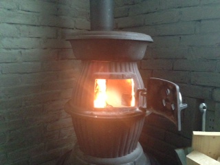 ストーブに廃材をパチパチ