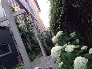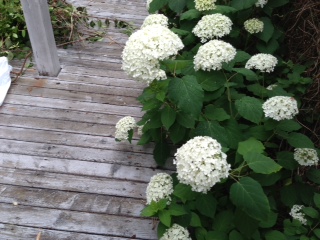 デッキのボーダーに植えてるアナベル
