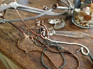 ブレスレットその他は赤の硝子ビーズ