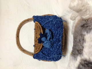 籠バッグに 手紡ぎ糸で