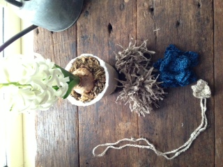 リネンの端切れで布花も作りました