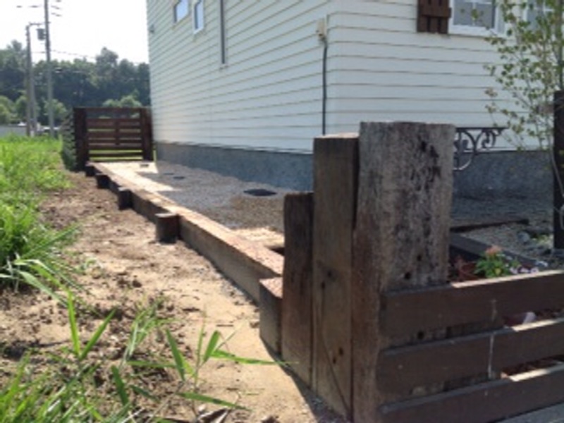 今回は道路側の土留めに枕木を