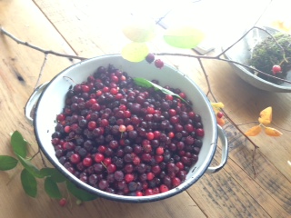 庭のジューンベリーを収穫して貰い