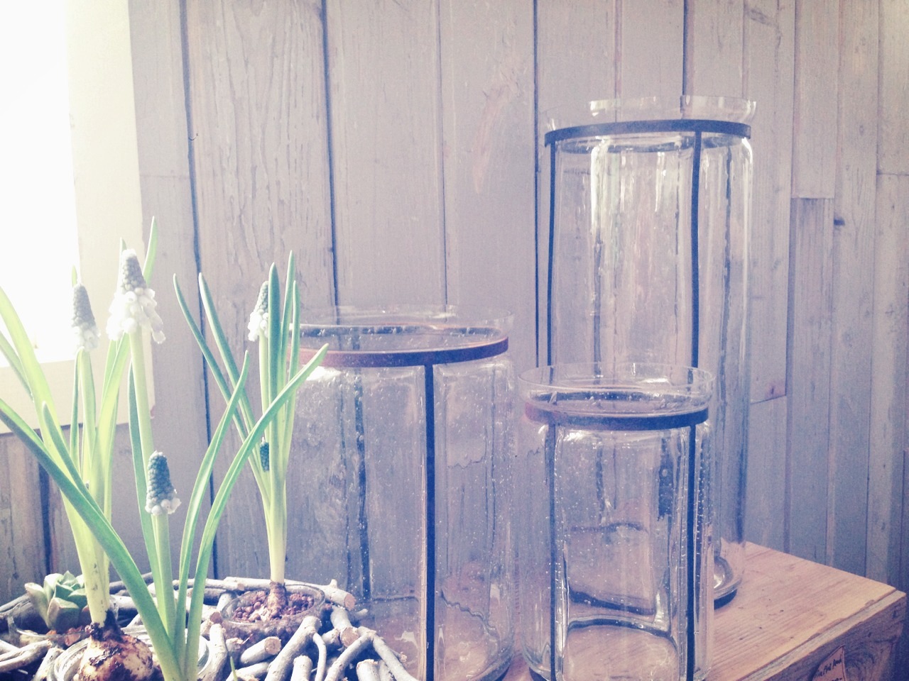 気泡ガラスにアイアン